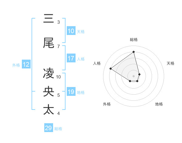 三尾 凌央太さんを姓名の画数から五運を鑑定