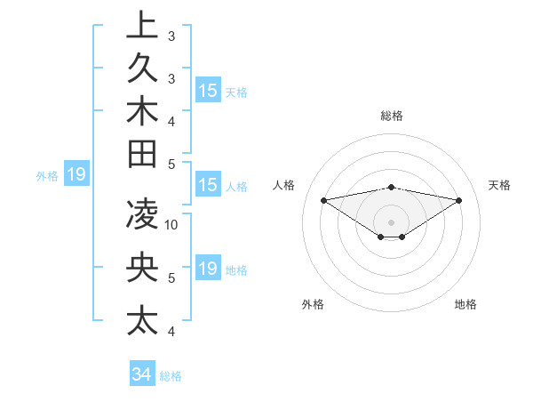 上久木田 凌央太さんを姓名の画数から五運を鑑定