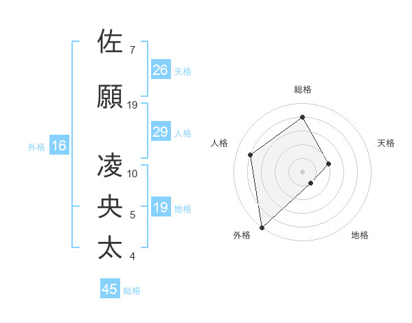 佐願 凌央太さんを姓名の画数から五運を鑑定