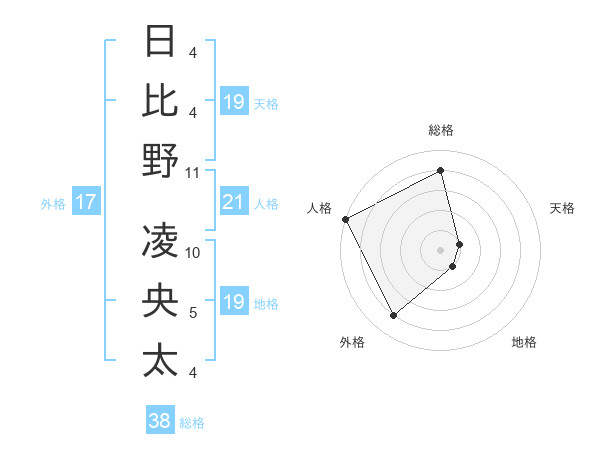 日比野 凌央太さんを姓名の画数から五運を鑑定