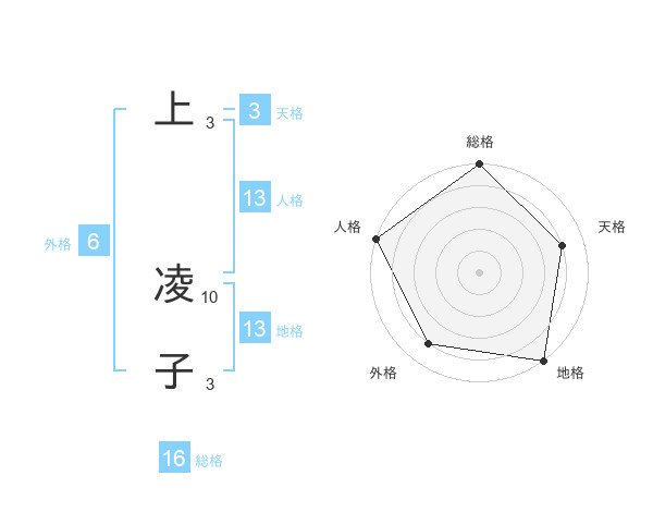 上 凌子さんの総格は16画の5点!