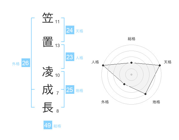 笠置 凌成長さんを姓名の画数から五運を鑑定