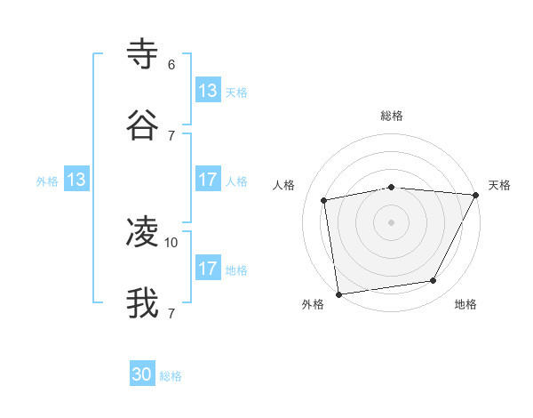 寺谷 凌我さんの外格は13画の5点!