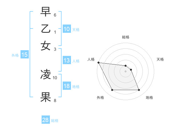 早乙女 凌果さんを姓名の画数から五運を鑑定