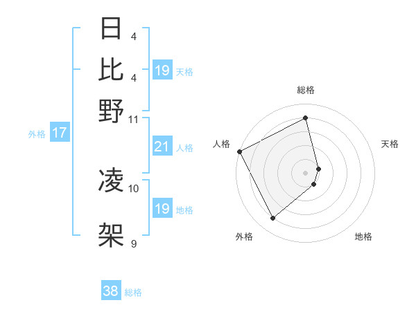 日比野 凌架さんを姓名の画数から五運を鑑定