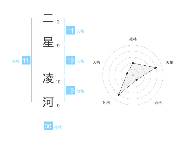 二星 凌河さんの総格は30画の2点!