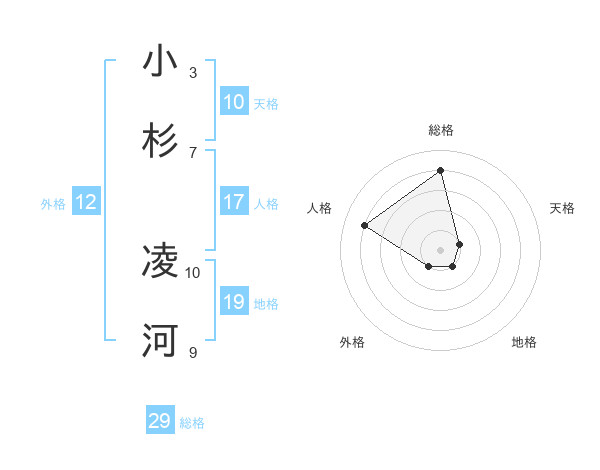 小杉 凌河さんを姓名の画数から五運を鑑定
