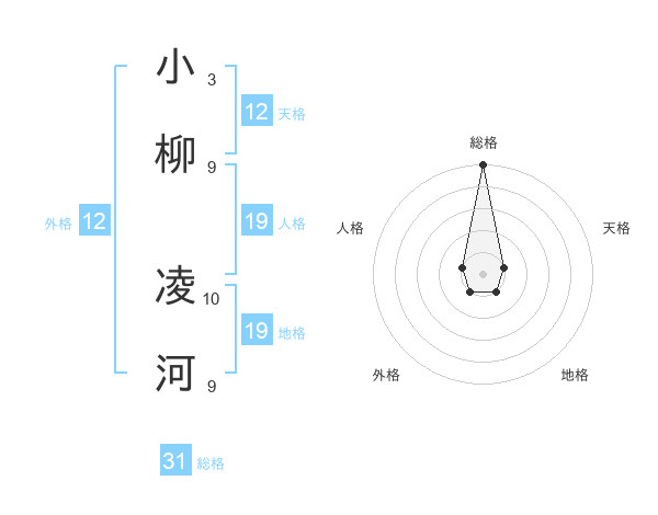小柳 凌河さんの総格は31画の5点!