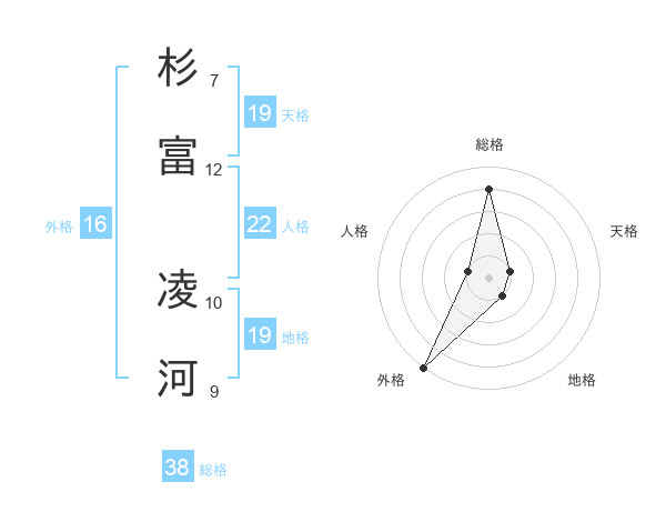 杉富 凌河さんを姓名の画数から五運を鑑定