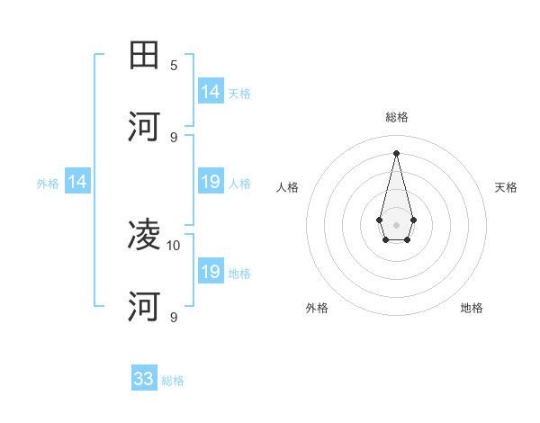 田河 凌河さんの総格は33画の4点!