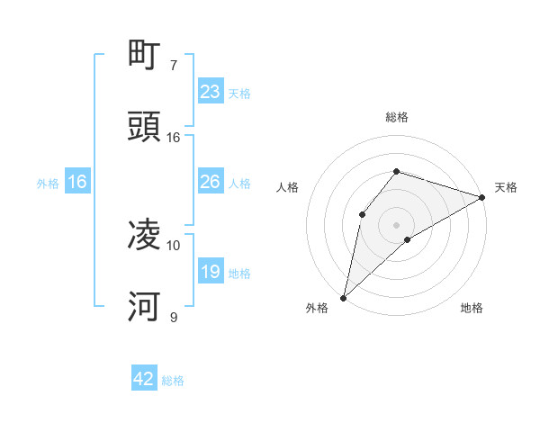 町頭 凌河さんを姓名の画数から五運を鑑定