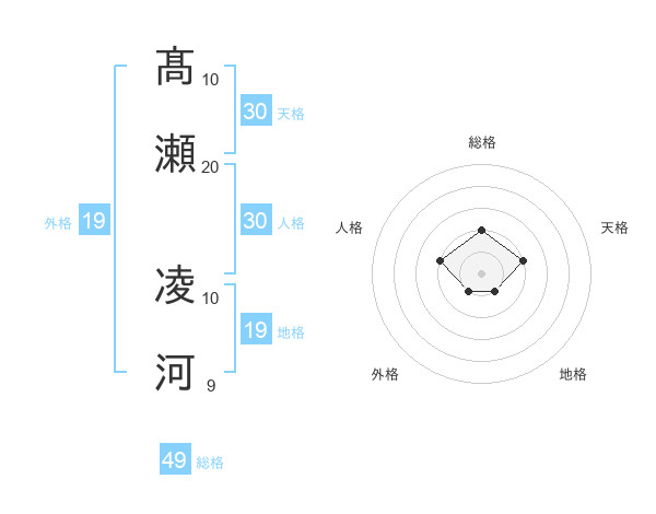 髙瀬 凌河さんを姓名の画数から五運を鑑定