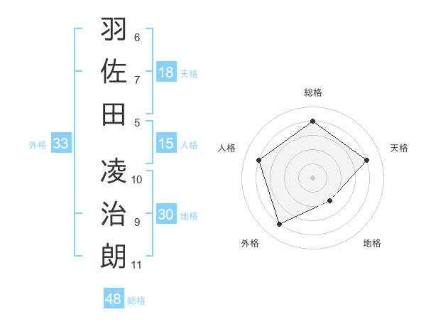 羽佐田 凌治朗さんを姓名の画数から五運を鑑定