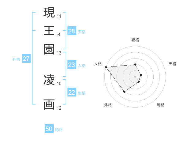 現王園 凌画さんを姓名の画数から五運を鑑定