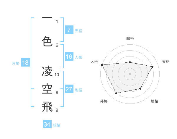一色 凌空飛さんの総格は34画の2点!