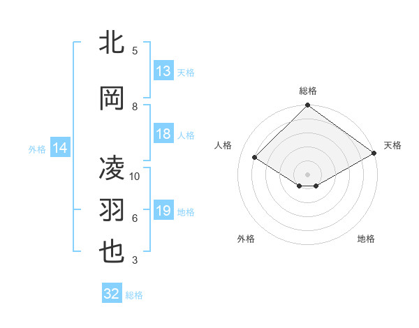 北岡 凌羽也さんを姓名の画数から五運を鑑定