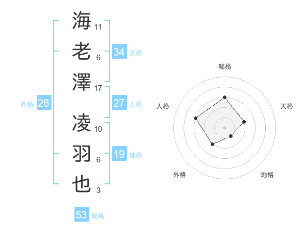 海老澤 凌羽也さんを姓名の画数から五運を鑑定