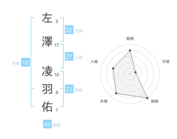 左澤 凌羽佑さんを姓名の画数から五運を鑑定