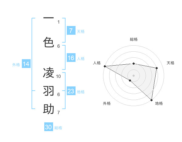 一色 凌羽助さんの総格は30画の2点!