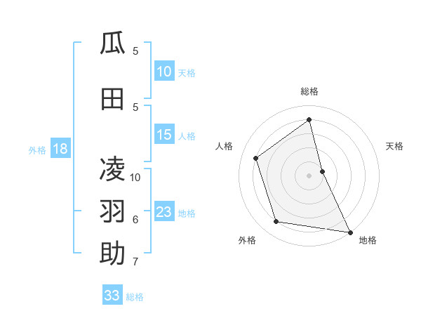 瓜田 凌羽助さんを姓名の画数から五運を鑑定