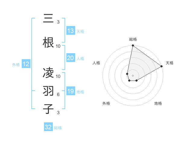 三根 凌羽子さんの外格は12画の1点!