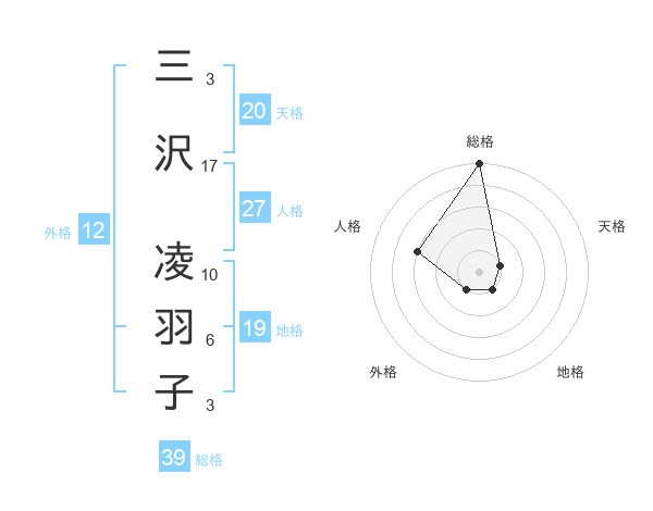 三沢 凌羽子さんを姓名の画数から五運を鑑定