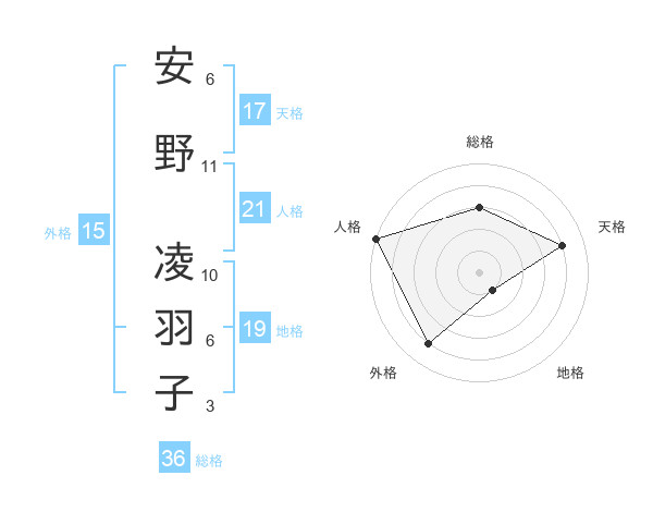 安野 凌羽子さんを姓名の画数から五運を鑑定