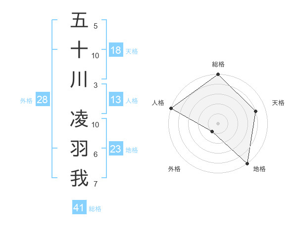 五十川 凌羽我さんの地格は23画の5点!