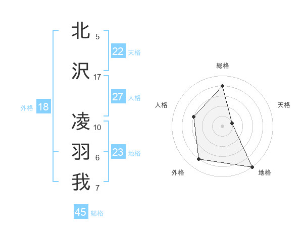 北沢 凌羽我さんを姓名の画数から五運を鑑定
