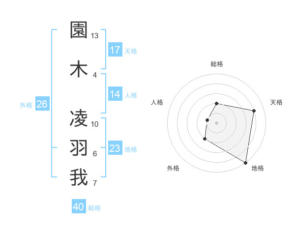 園木 凌羽我さんの天格は17画の4点!