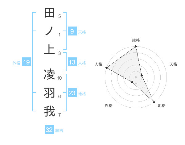 田ノ上 凌羽我さんを姓名の画数から五運を鑑定