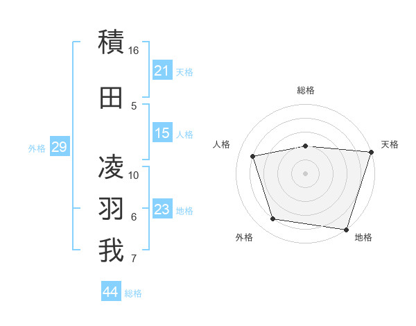 積田 凌羽我さんを姓名の画数から五運を鑑定
