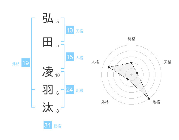弘田 凌羽汰さんを姓名の画数から五運を鑑定