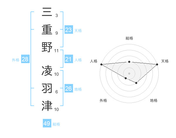 三重野 凌羽津さんの総格は49画の2点!