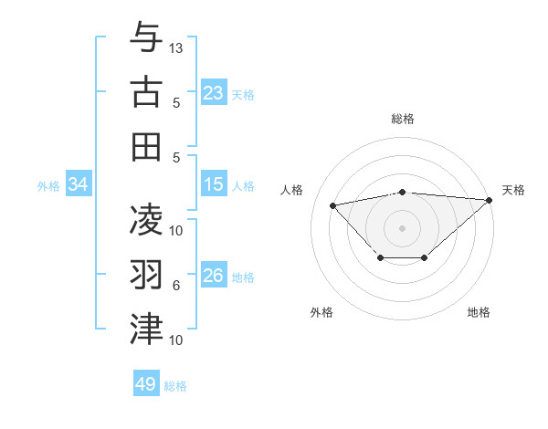 与古田 凌羽津さんを姓名の画数から五運を鑑定