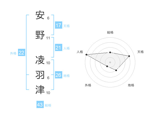 安野 凌羽津さんを姓名の画数から五運を鑑定