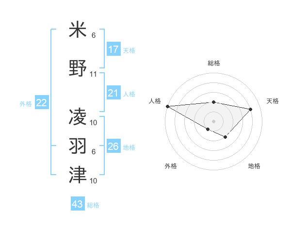 米野 凌羽津さんを姓名の画数から五運を鑑定