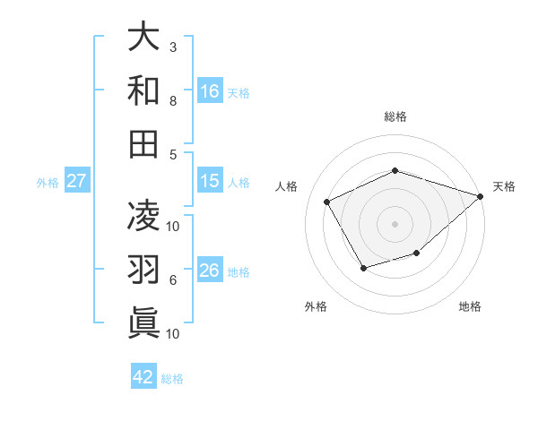 大和田 凌羽眞さんを姓名の画数から五運を鑑定