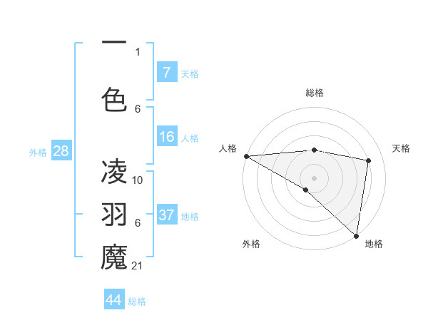 一色 凌羽魔さんの地格は37画の5点!