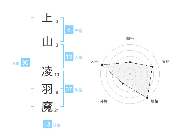 上山 凌羽魔さんを姓名の画数から五運を鑑定