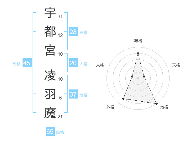 宇都宮 凌羽魔さんの総格は65画の4点!