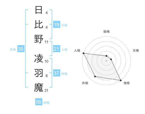 日比野 凌羽魔さんを姓名の画数から五運を鑑定