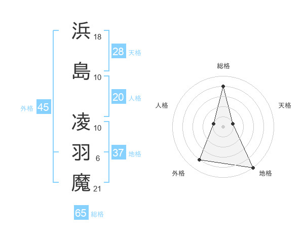 浜島 凌羽魔さんを姓名の画数から五運を鑑定