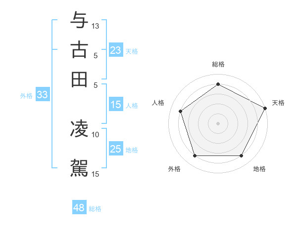 与古田 凌駕さんの天格は23画の5点!