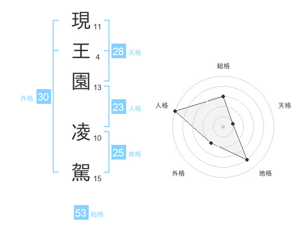 現王園 凌駕さんを姓名の画数から五運を鑑定
