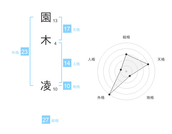 園木 凌さんの総格は27画の3点!