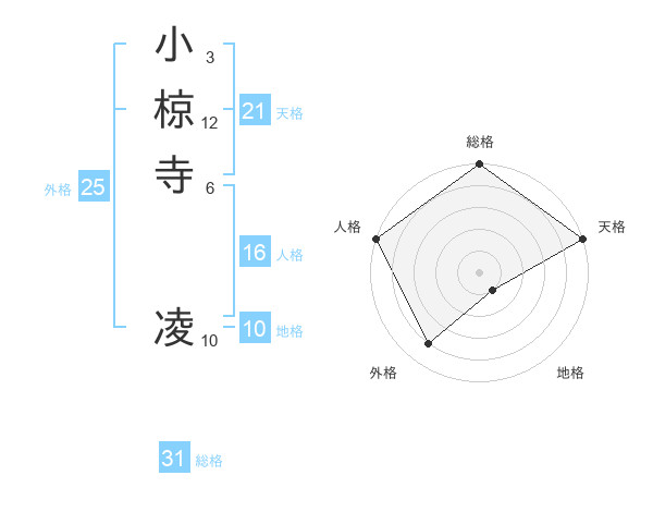 小椋寺 凌さんの総格は31画の5点!