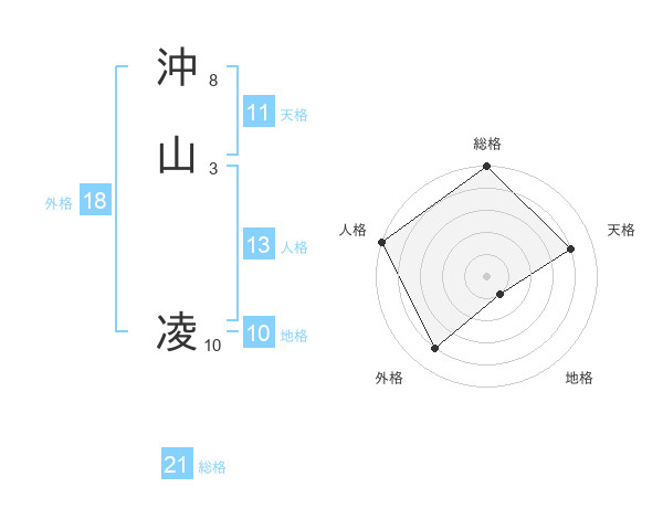 沖山 凌さんの総格は21画の5点!