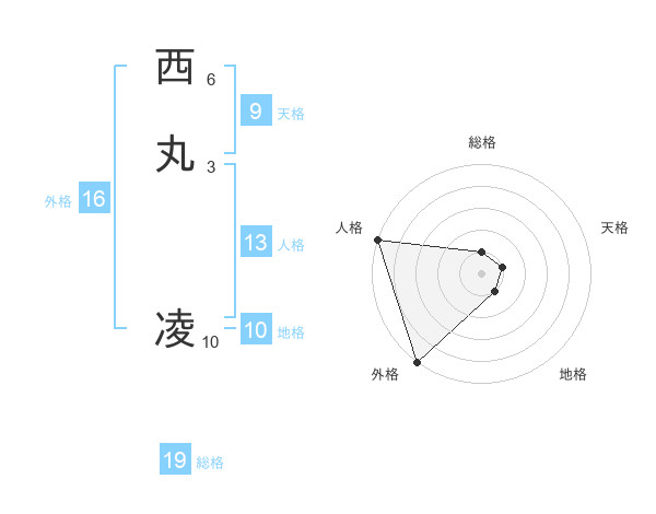 西丸 凌さんの総格は19画の1点!