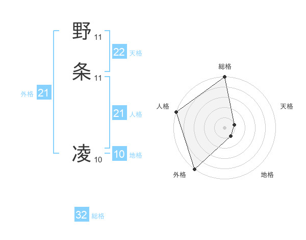 野条 凌さんの総格は32画の5点!